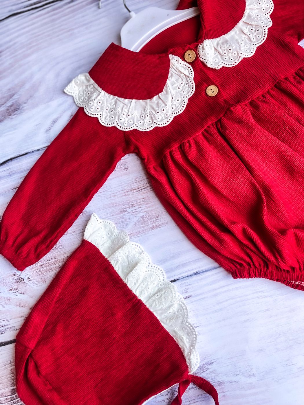 Efektan crveni bodi sa detaljima čipke na kragni ( bez kapice )