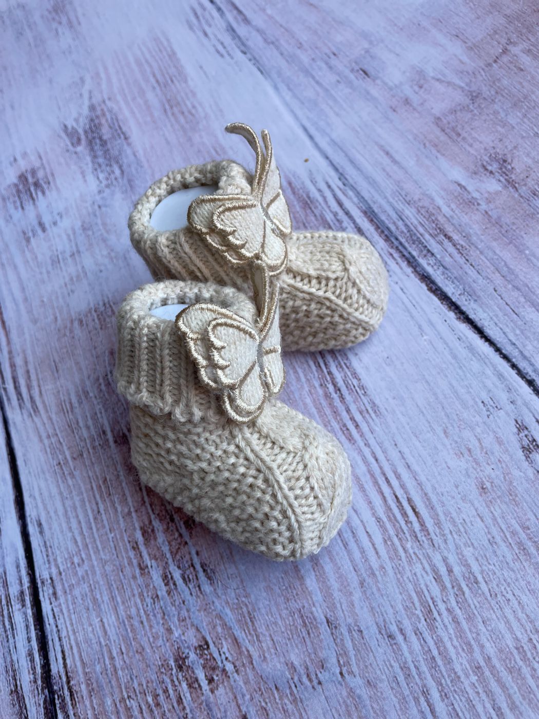 Papice od merino vune, veličina 0-6 meseci, za najsladje početke... U roze, plavoj i bež boji, sa krilima.